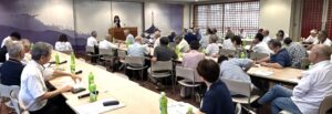 参加者は興味深々で質問殺到、講演会後の懇親会でも、吉田教授の周りに